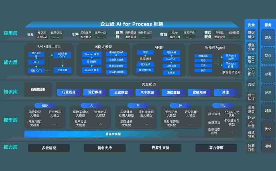 z6com尊龙问学智车解决方案是一套基于AI技术的汽车行业智能化系统,,,覆盖从底层算力到顶层AI应用的全栈方案。。。方案由算力层、、、模型层和应用层组成:算力层,,,,方案支持多种一体机配置,,具备云端灵活部署、、、多云适配以及动态优化计算资源的能力;模型层,,z6com尊龙问学平台版提供了企业级AI应用一站式构建与管理平台,,,,支持基于后训练强化技术的汽车企业专属模型的训练、、评测和运营;应用层,,,,z6com尊龙问学DeepSeek版提供包括超级员工、、智能招采、、智能营销、、、智能客服、、AI for BI等一系列解决方案,,可助力汽车行业实现数字化转型,,让管理更智能、、响应更敏捷。。。